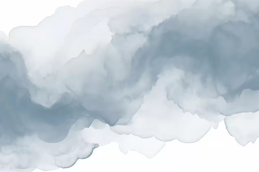 Acuarela montañas con globos de aire, etéreo, colores azules