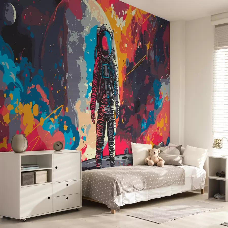 Abstracción caótica de formas geométricas, rosa, azul, amarillo.