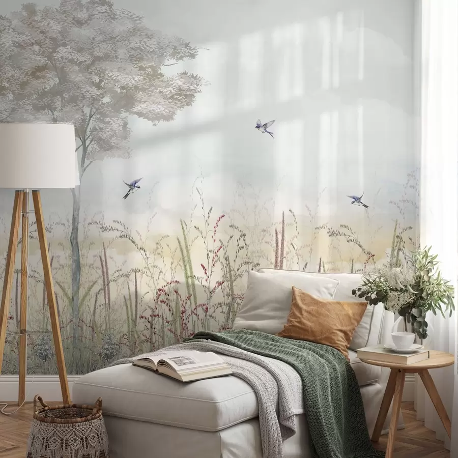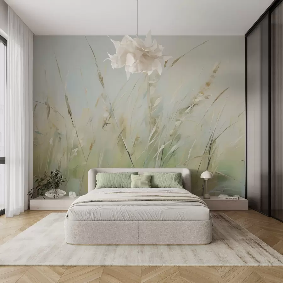 delicadas flores silvestres blancas Reina Ana, de estilo pintoresco, tonos verdes