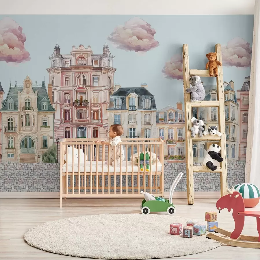 Poni blanco como la nieve y bailarina entre flores y nubes