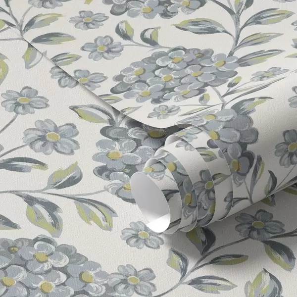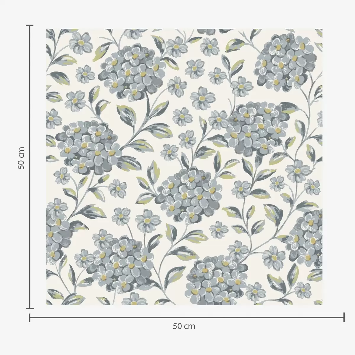 Papel pintado Flores y hojas frondosas en una paleta de colores gris azulados. Nr. a00778