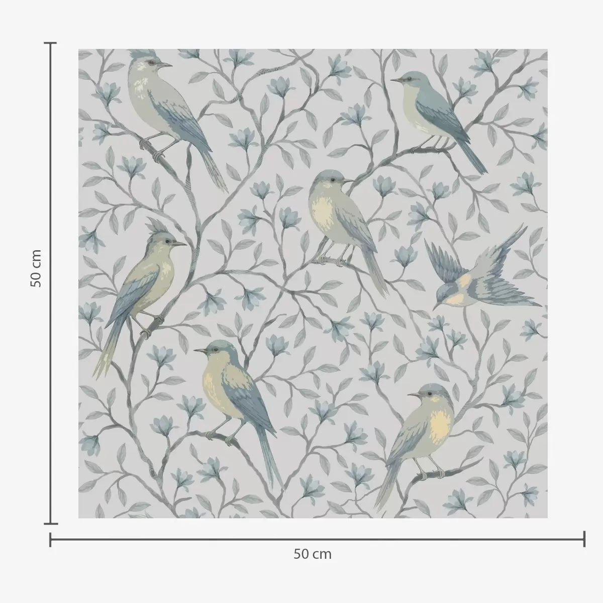 Papel pintado Pájaros en las ramas, esquema gris azulado Nr. a00782