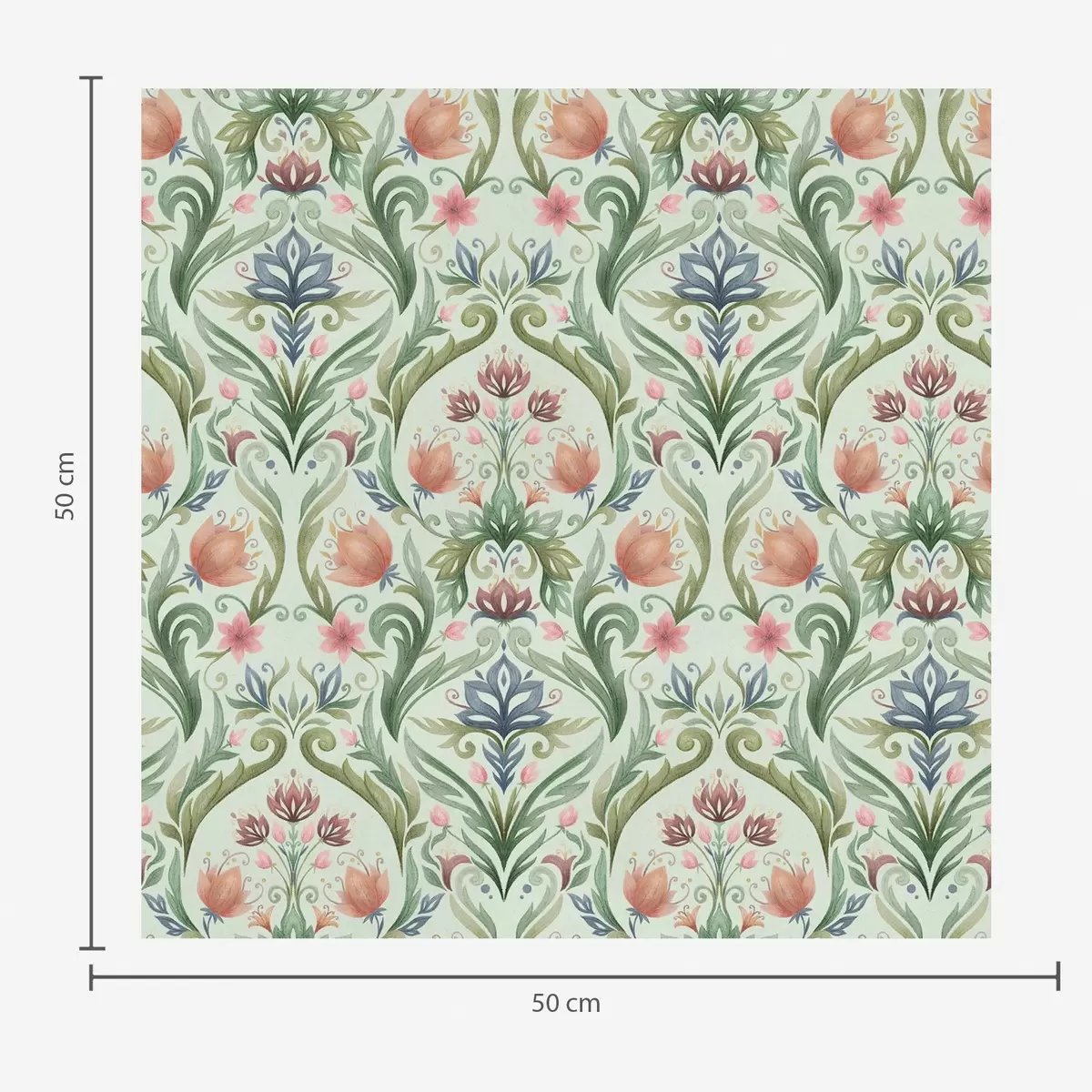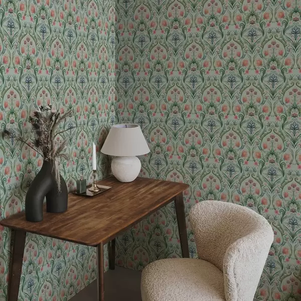 Papel pintado Adorno floral simétrico, paleta de colores menta y crema. Nr. a00827v1