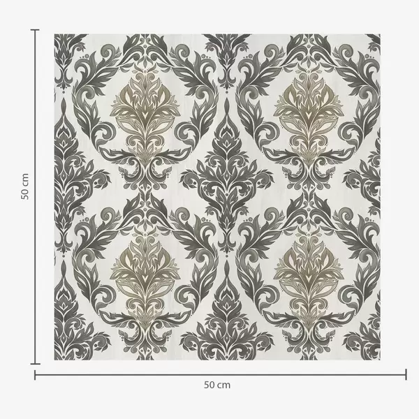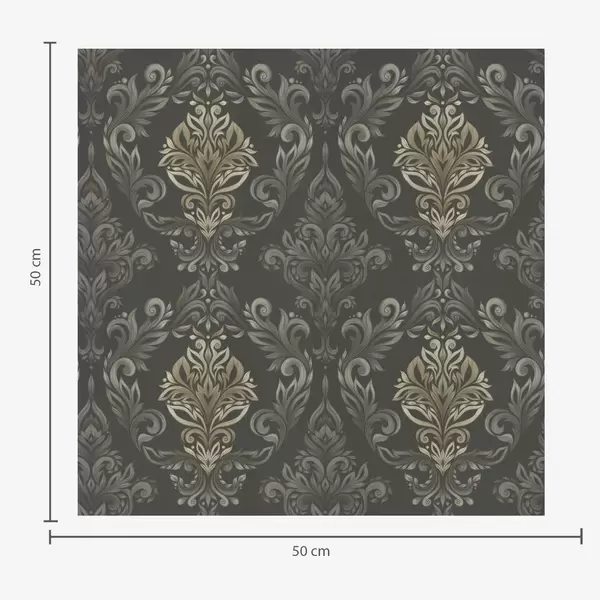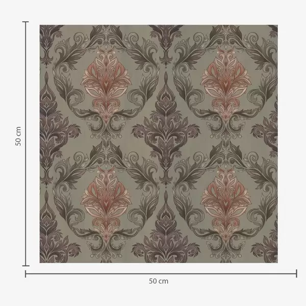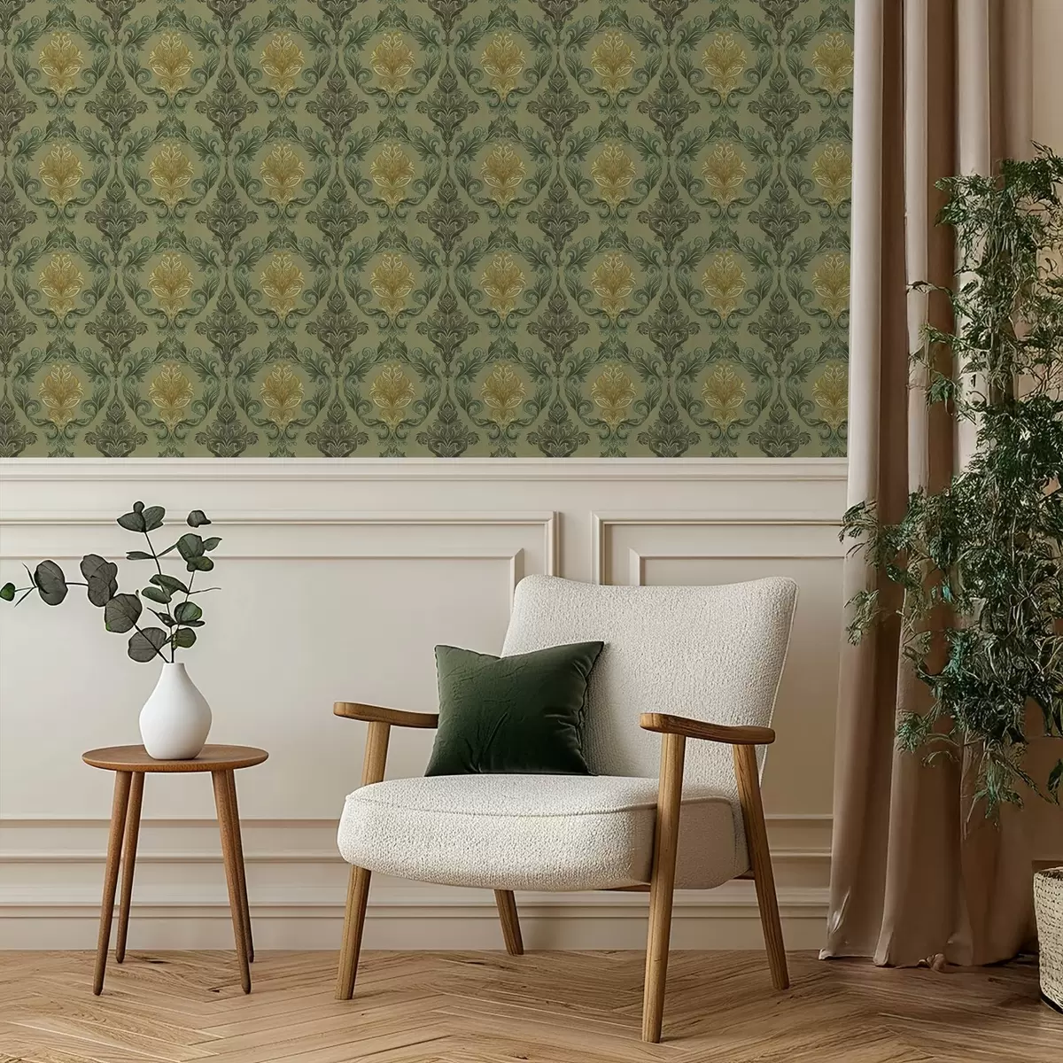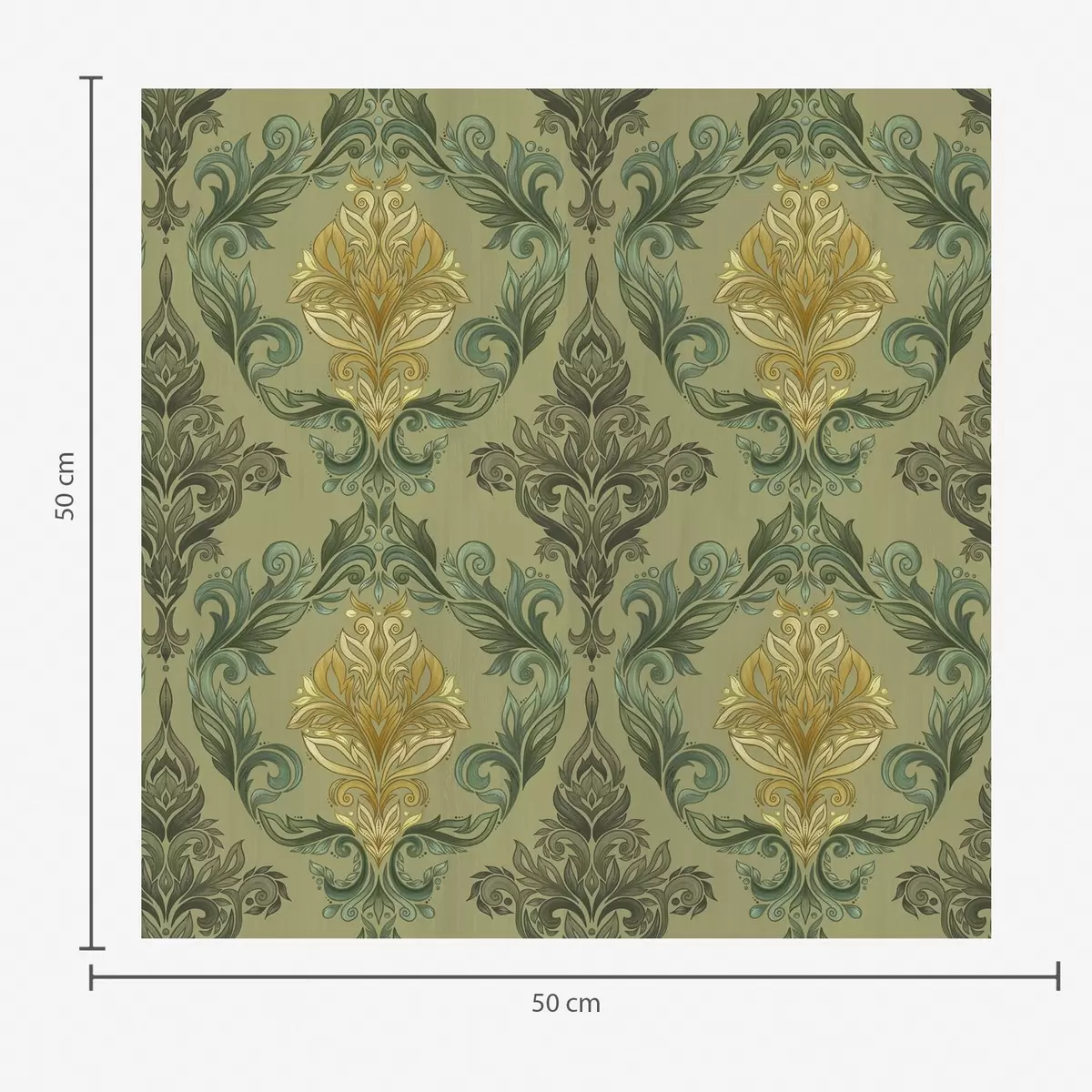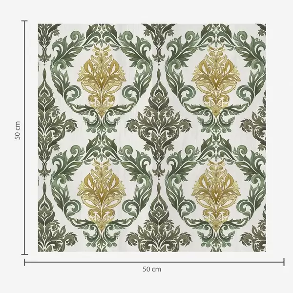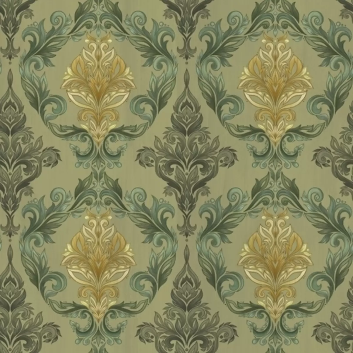 Fotomurales Damasco con volutas vegetales, paleta de colores oliva y ocre. Nr. a00828
