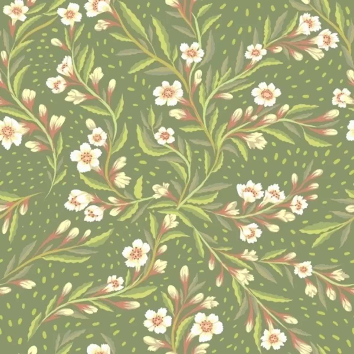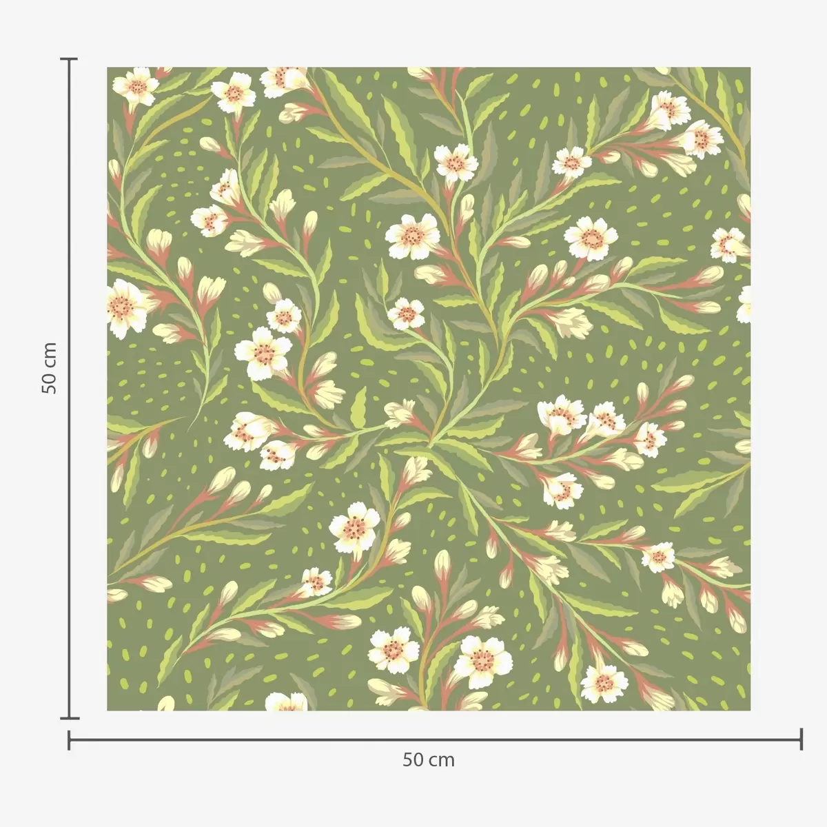 Fotomurales Ramas con flores color crema sobre fondo oliva. Nr. a00850