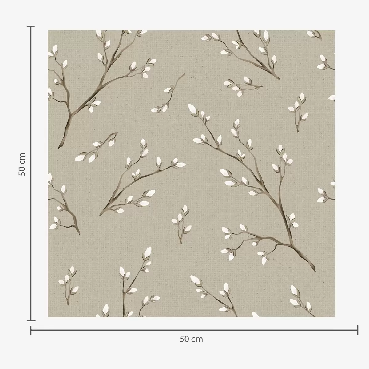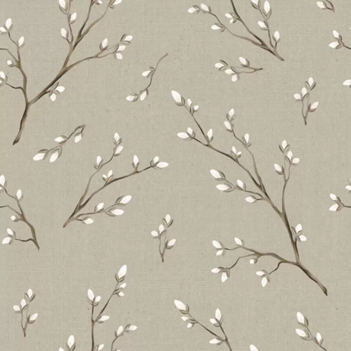 Fotomurales Ramitas con brotes blancos sobre fondo gris topo lino Nr. a00861