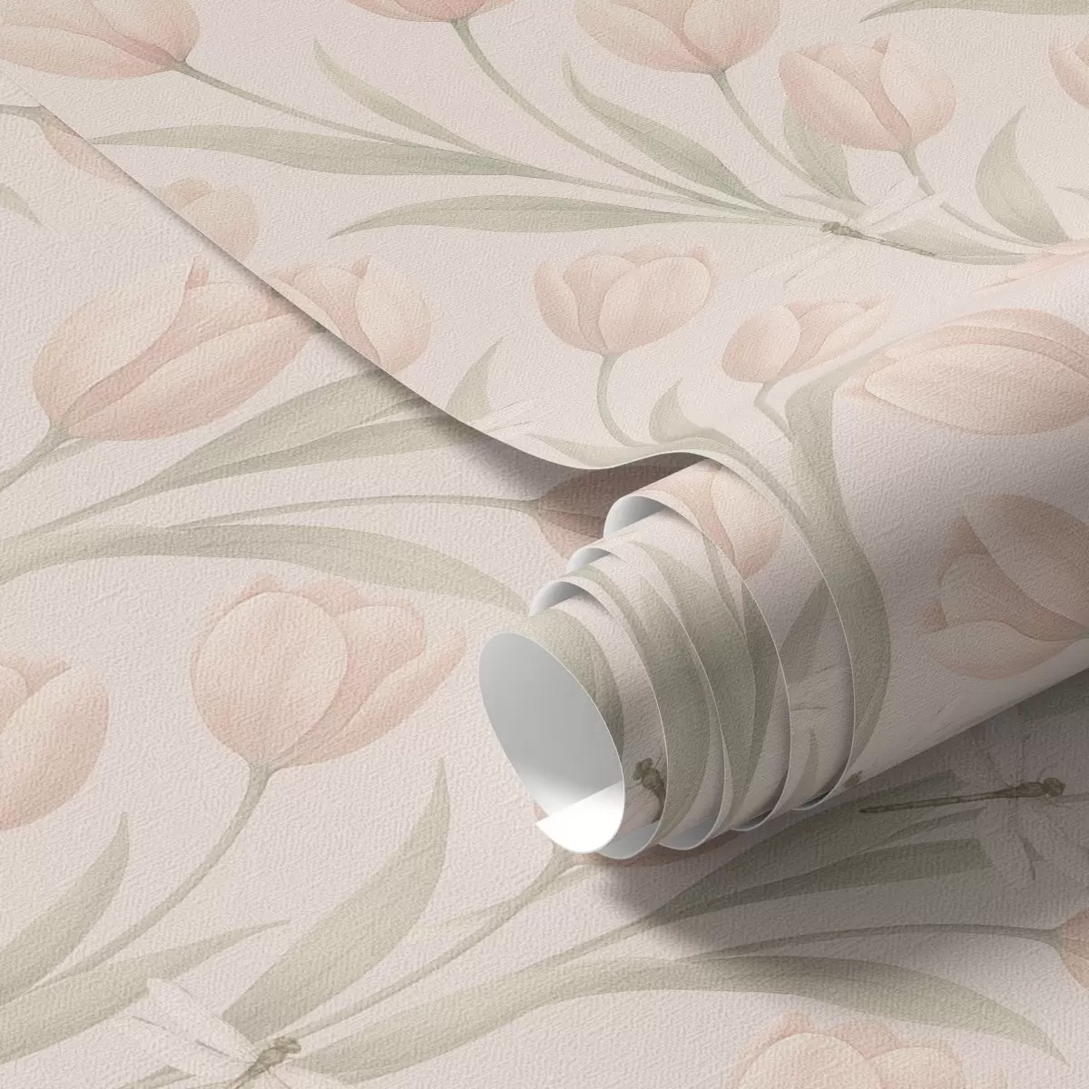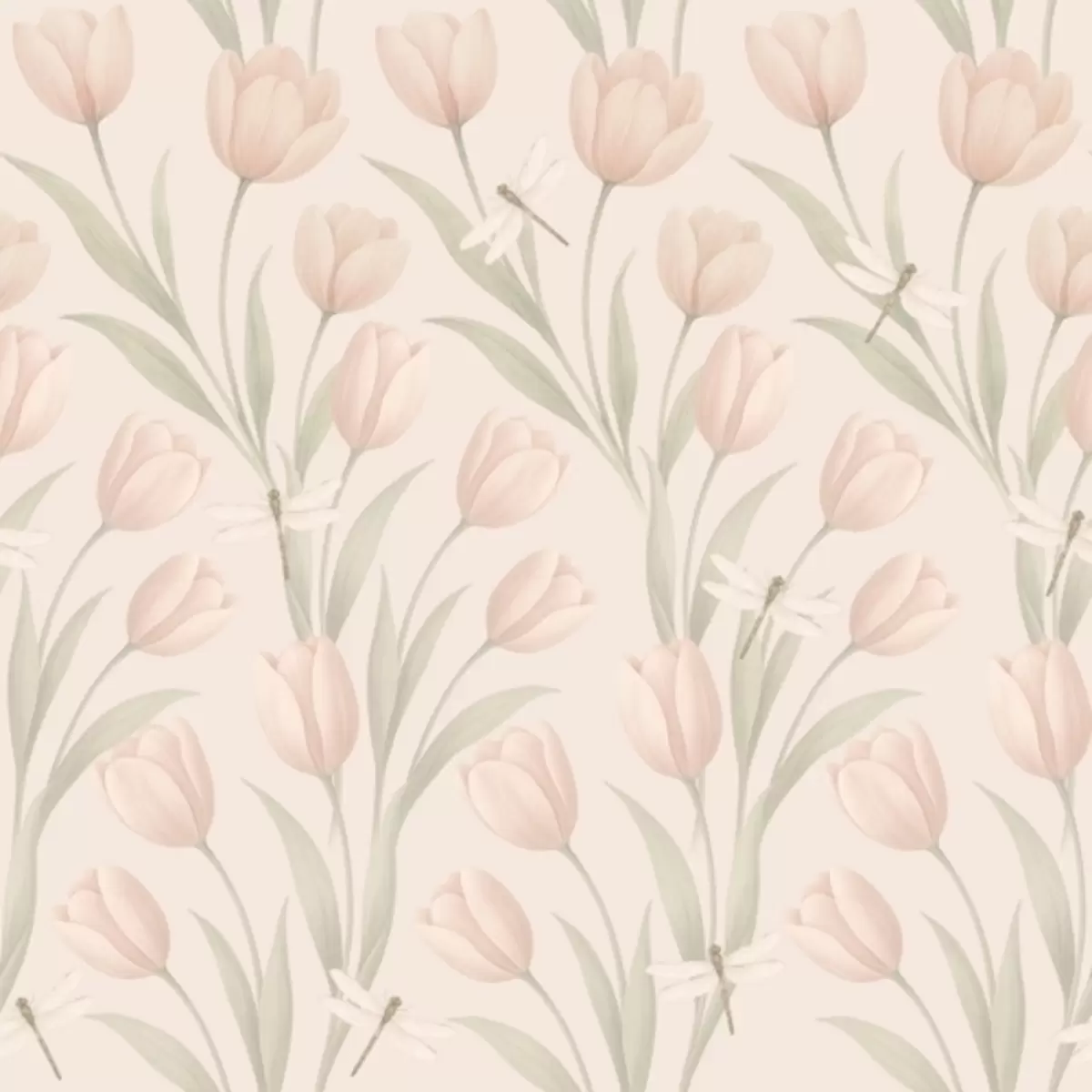 Fotomurales Tulipanes pastel con libélulas sobre fondo rosa pálido Nr. a00876
