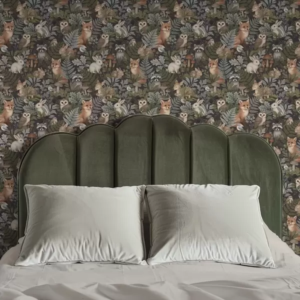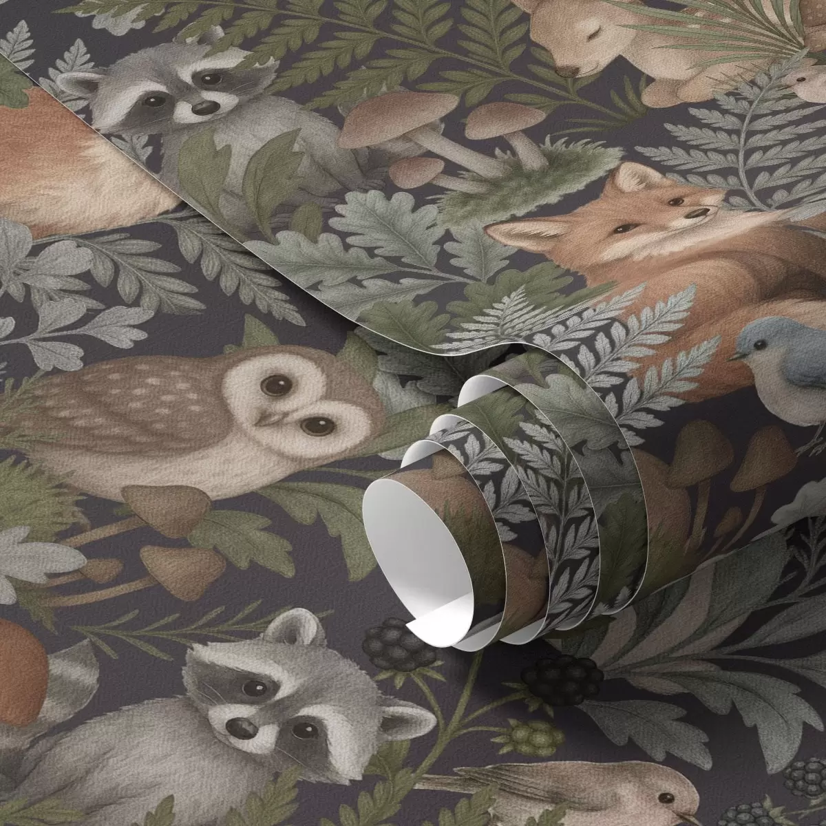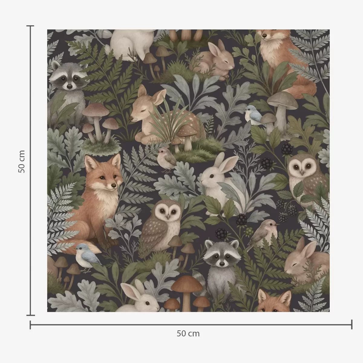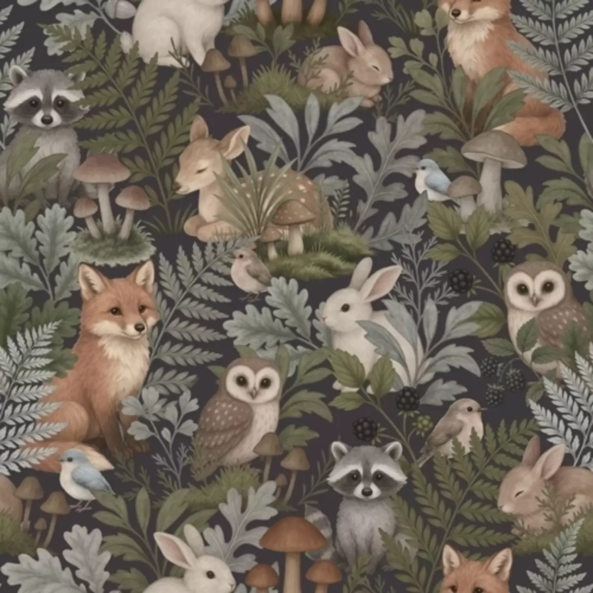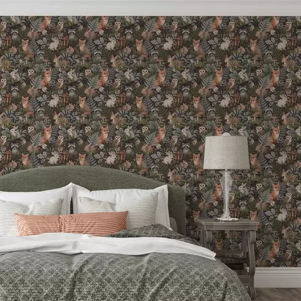 Fotomurales Animales del bosque y helechos sobre carbón oscuro Nr. a00880