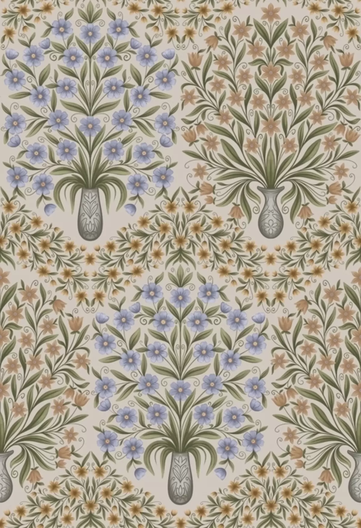 Fotomurales Jarrones alternados y flores azules en salvia sobre rosa pálido. Nr. a00901