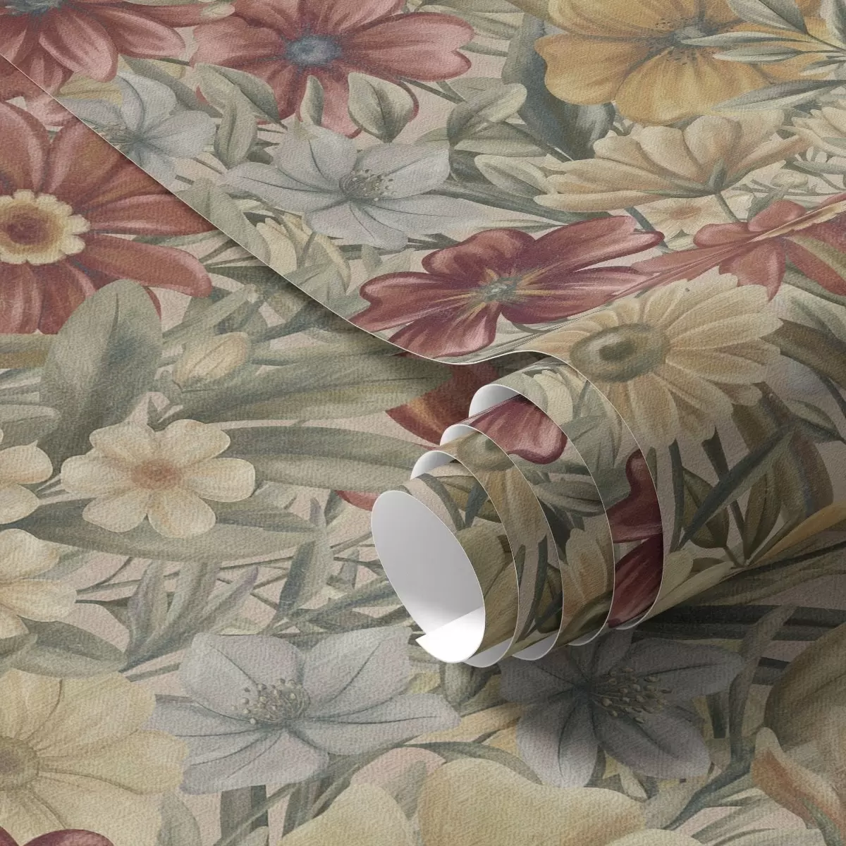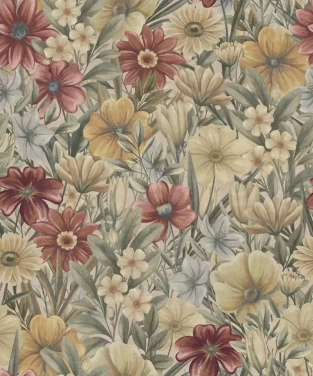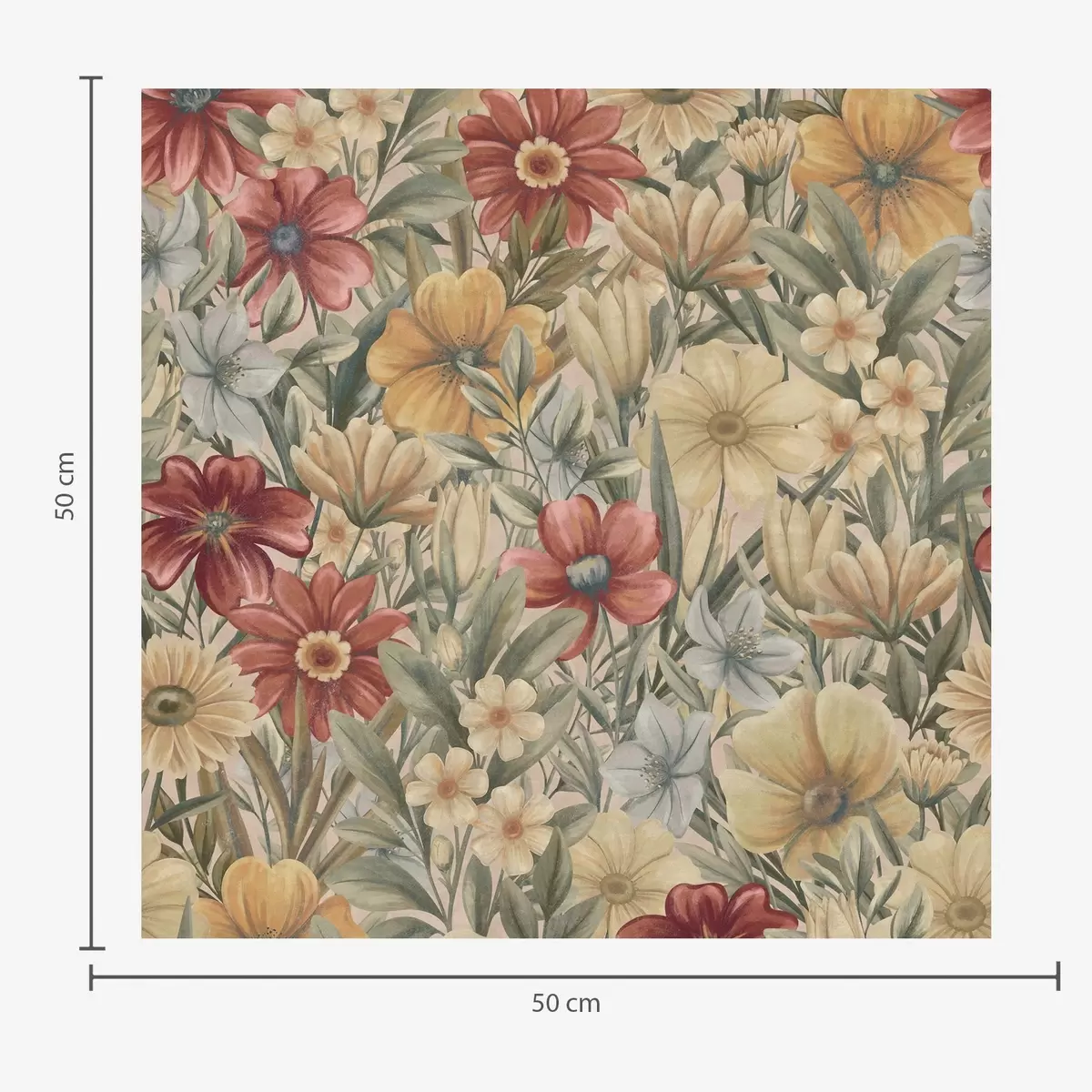 Fotomurales Flores de pradera vintage en cálidos tonos amarillos, rojos y salvia. Nr. a00906