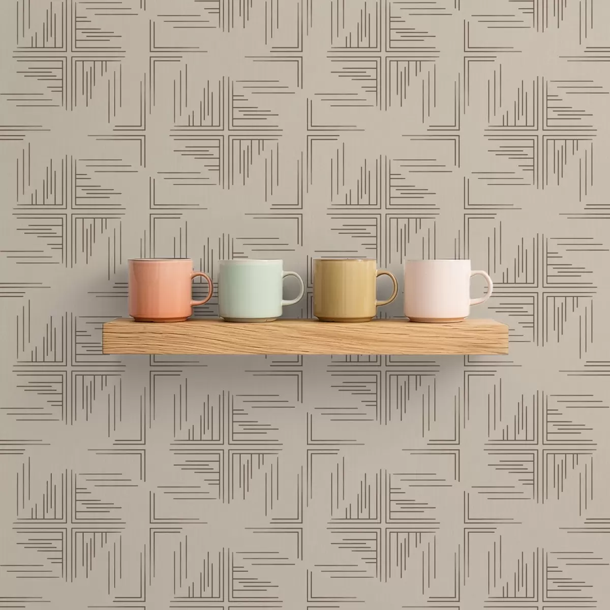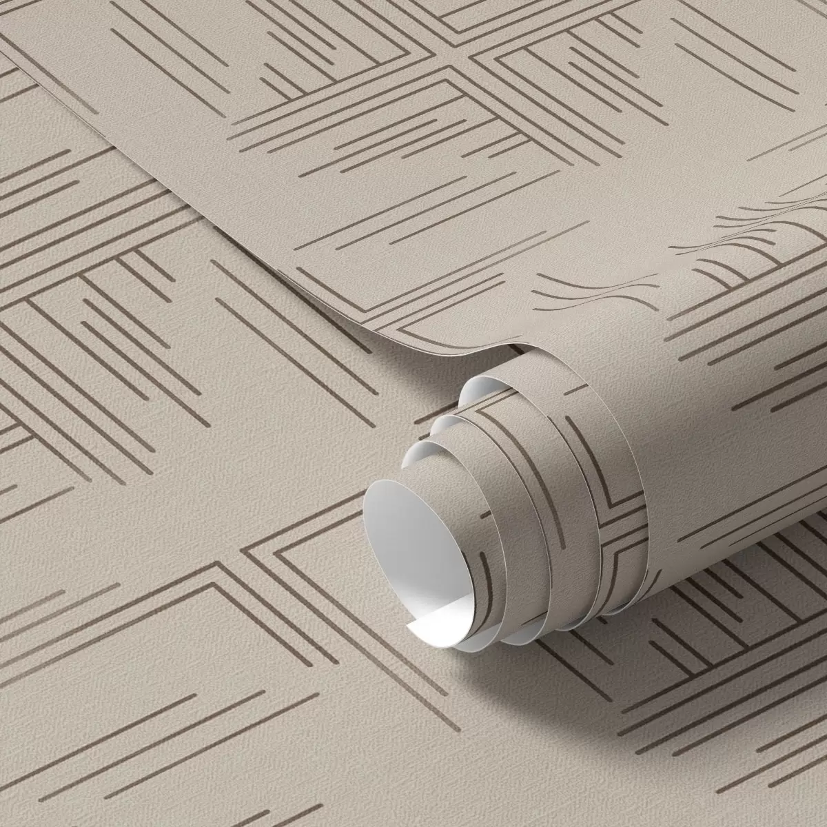 Fotomurales Bloques de esquina de cacao con detalles de líneas dispersas, beige Nr. a00912
