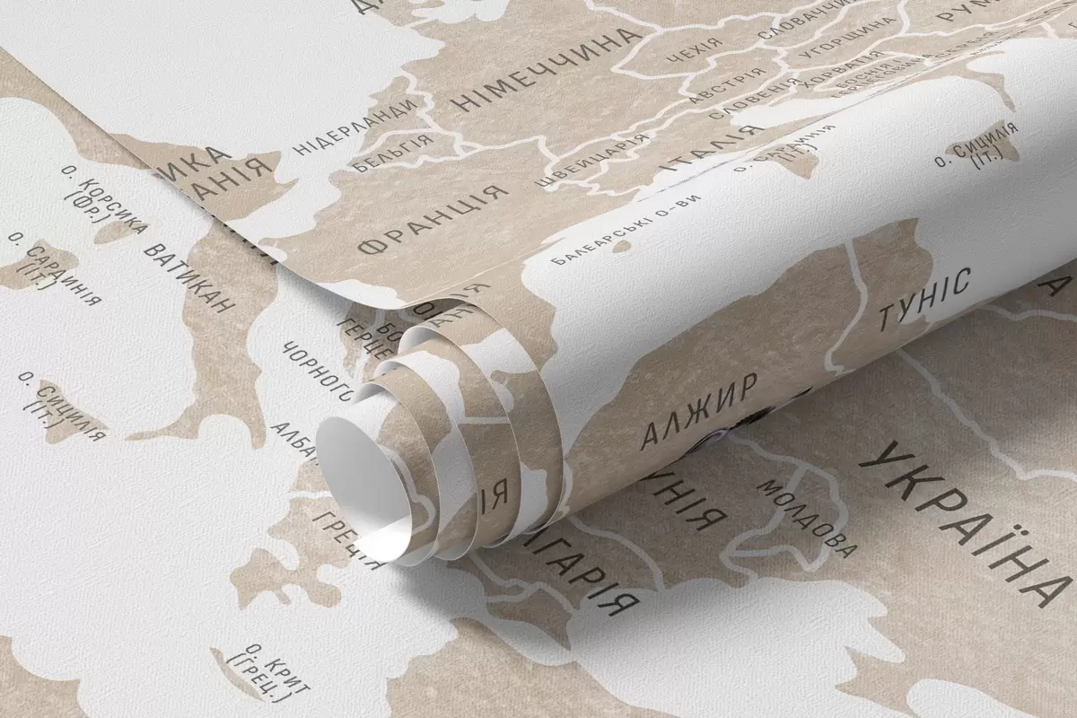 Fotomurales Mapa infantil en estilo acuarela con animales y globos aerostáticos. Idioma ucraniano. Color beige. Nr. c00001ukv2