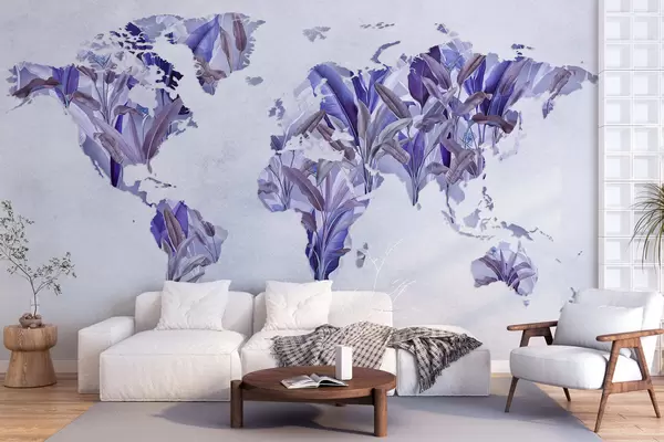Fotomurales Un mapamundi morado hecho con hojas de plátano Nr. c00007v1