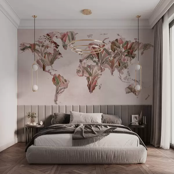 Fotomurales Un mapamundi rosa hecho con hojas de plátano Nr. c00007v2