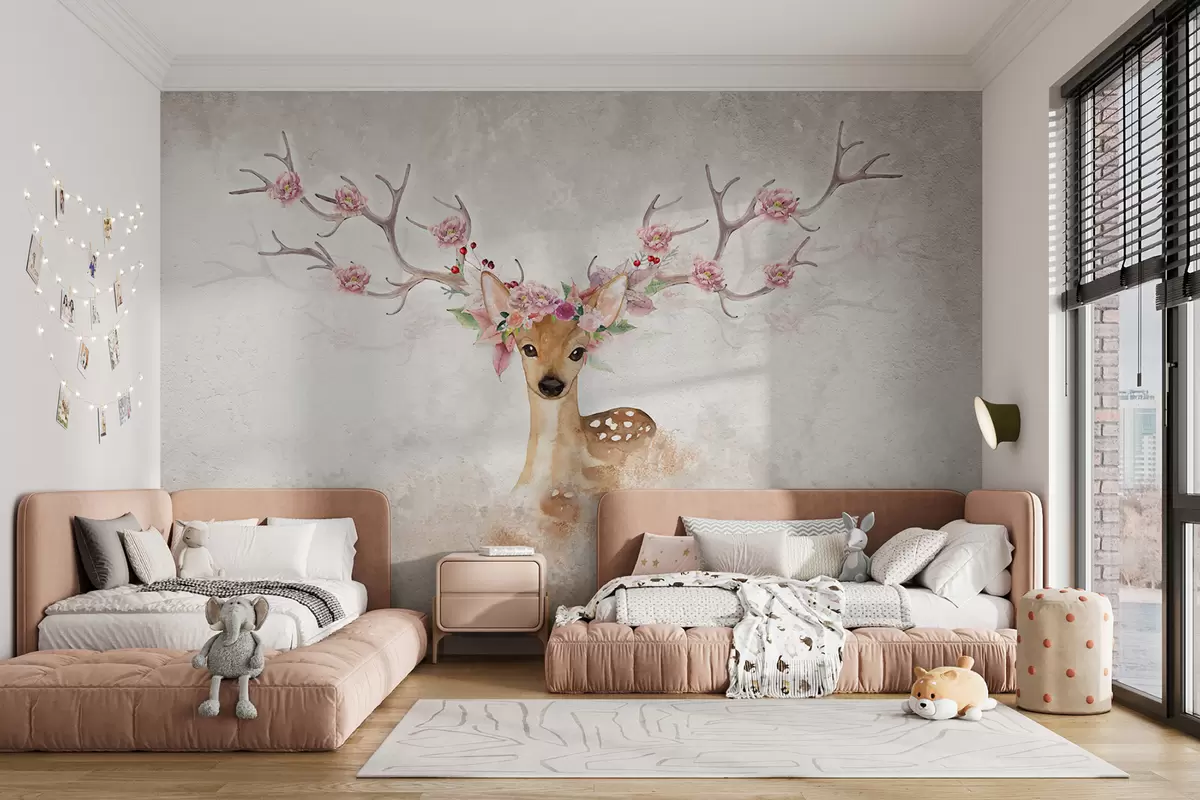 Fotomurales Ciervo con flores en las astas Nr. u04671