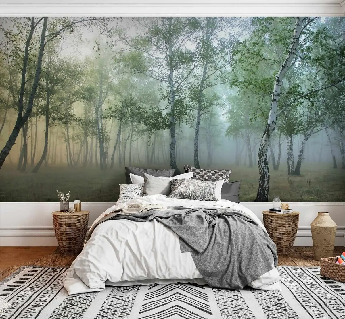 Fotomurales Bosque de abedules de niebla Nr. u25820