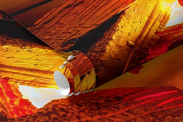 Impreso bajo pedido y entregado en rollos de hasta 50 cm de ancho.