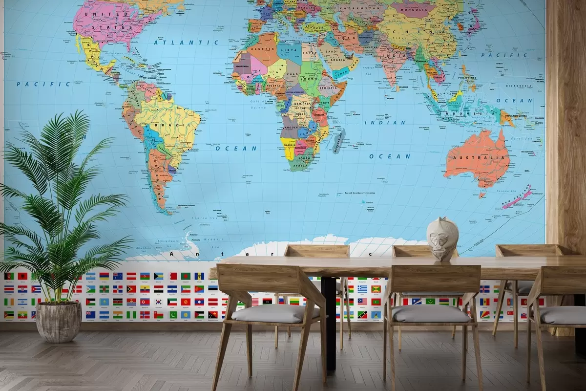 Fotomurales Mapa del mundo con banderas de países Nr. u60137