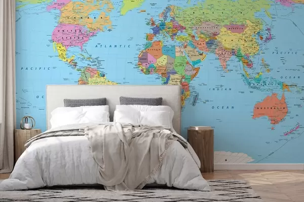 Fotomurales Mapa del mundo con banderas de países Nr. u60137