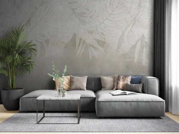 Fotomurales Hojas de palmera en tonos grises Nr. u71245