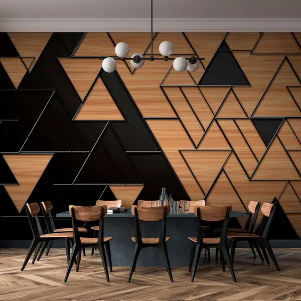 Fotomurales triángulos 3D gris oscuro y veteado de madera con líneas en relieve Nr. u75167