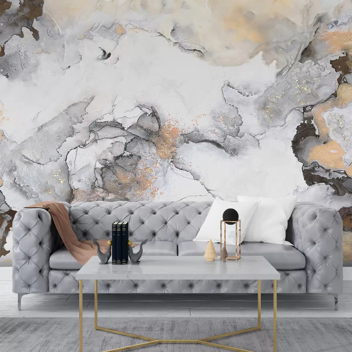 Fotomurales Mármol blanco grisáceo con motas Nr. u78459