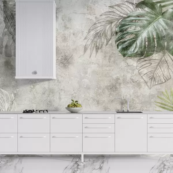 Fotomurales Hojas tropicales en una pared envejecida Nr. u93964