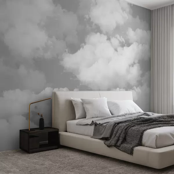 Fotomurales Las nubes blancas sobre un cielo gris son una nueva tendencia en el interior. Nr. u94178