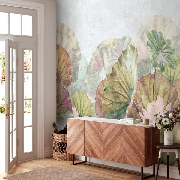 Fotomurales Nenúfares verdes y lirios rosas con textura grunge Nr. u94272