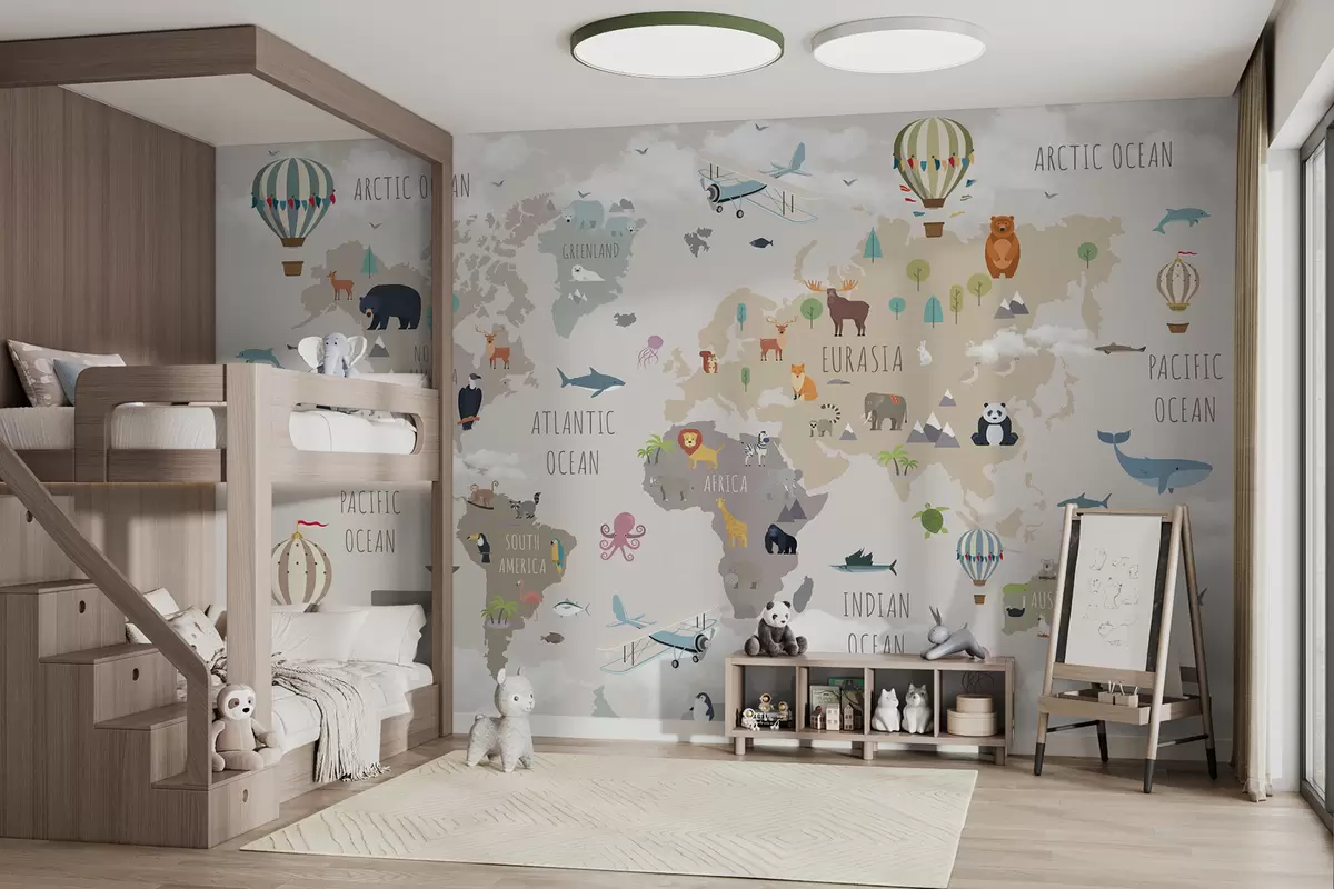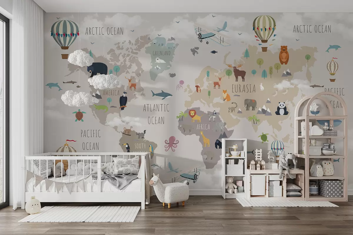 Fotomurales Mapa mundial con animales y globos. Nr. u96461