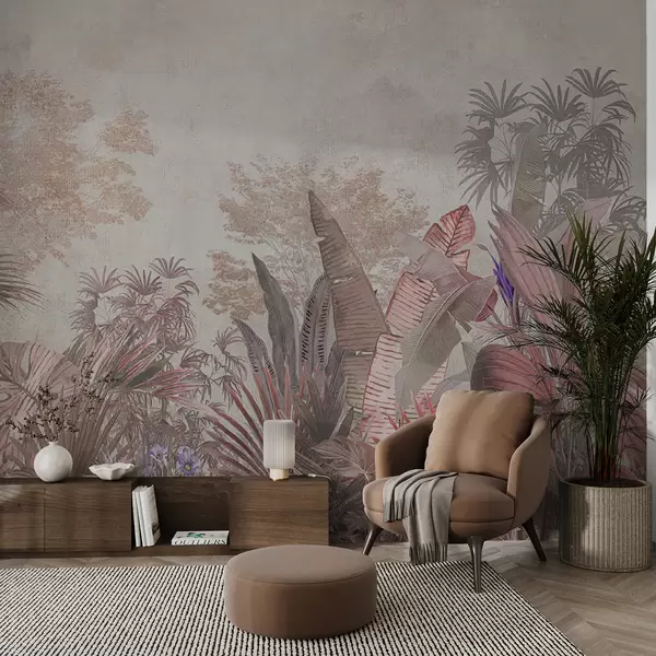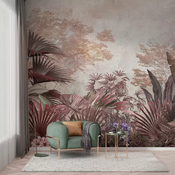 Fotomurales Ilustración de papel tapiz tropical vintage con follaje de palmeras exóticas Nr. u97104