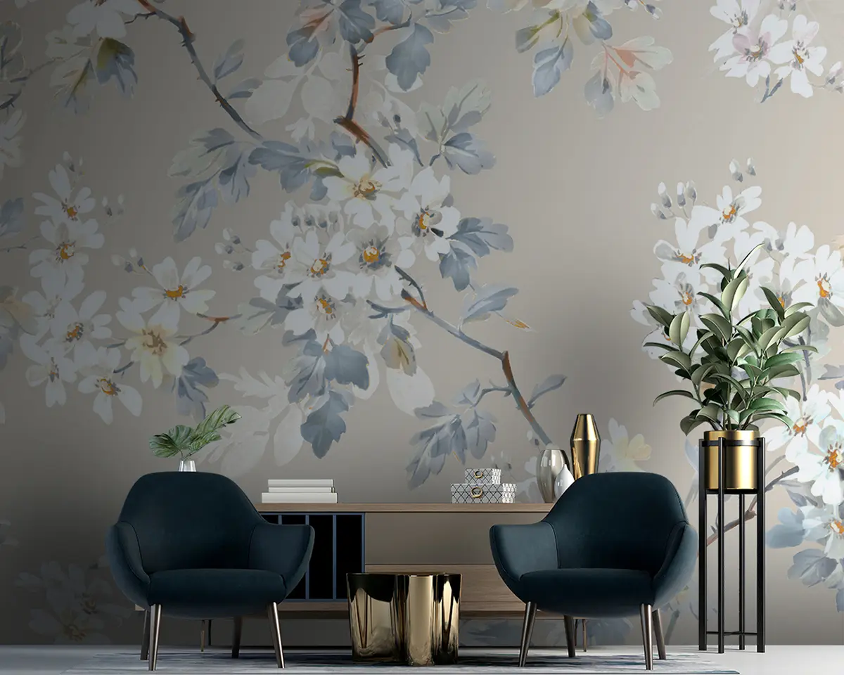 Fotomurales Flores y mariposas pintadas a mano con acuarelas. Nr. u97114