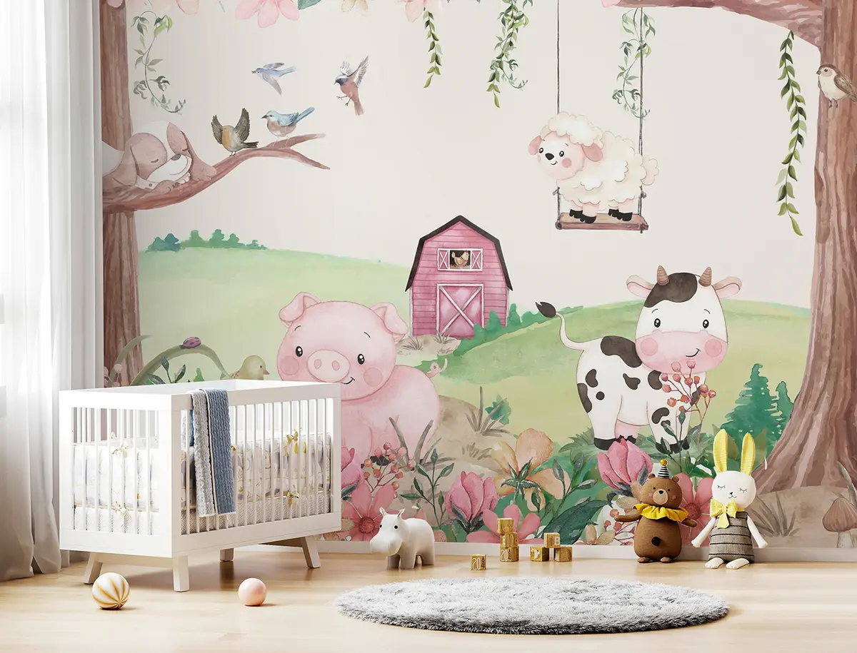 Fotomurales Paisaje de granja con animales. Nr. u97370