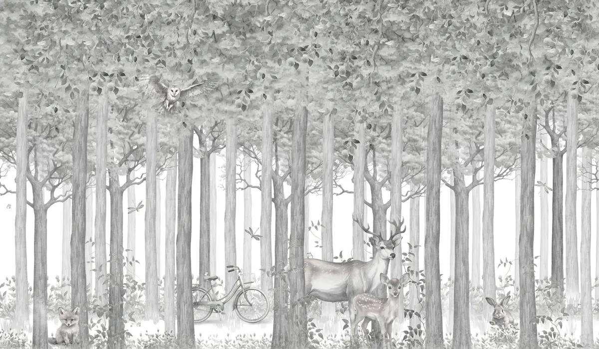 Fotomurales Animales del bosque ciervo y búho en gris Nr. u97629v1