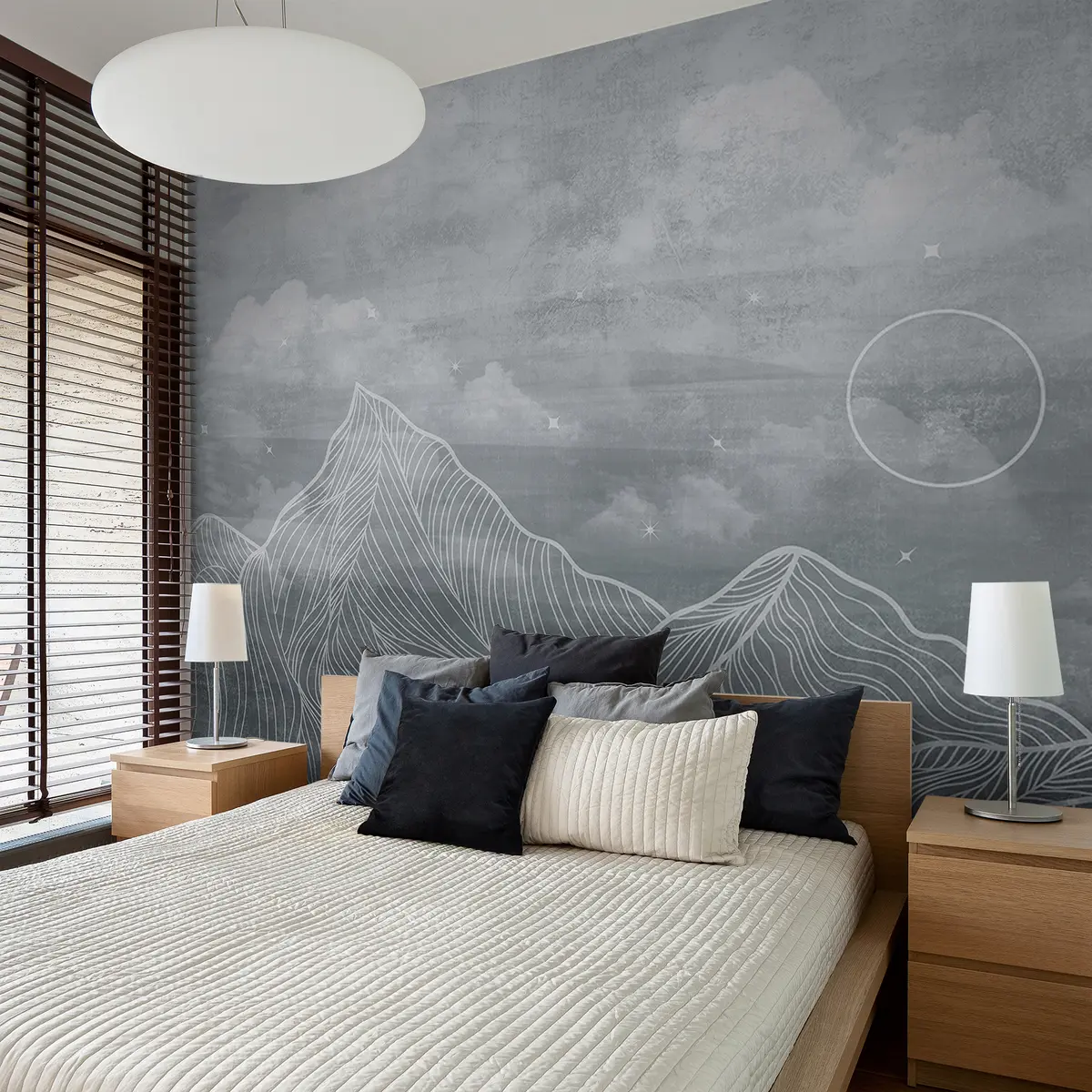 Fotomurales Textura grunge con nubes y montañas, color gris, arte temático de la naturaleza Nr. u98838v1