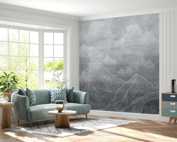 Fotomurales Textura grunge con nubes y montañas, color gris, arte temático de la naturaleza Nr. u98838v1