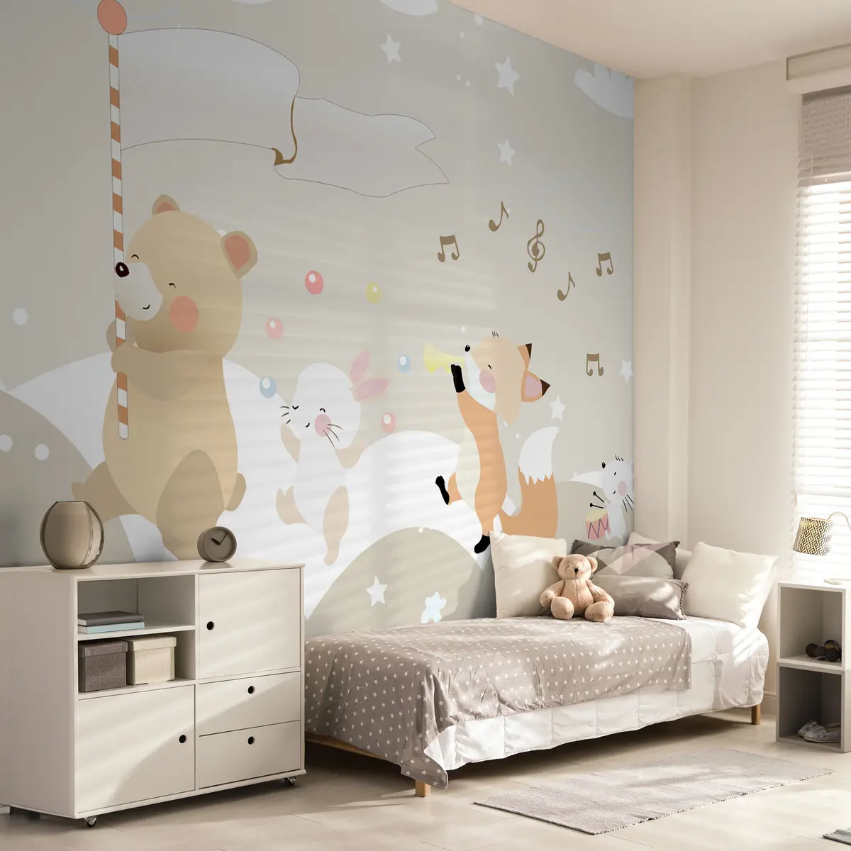 Fotomurales Diseño de papel pintado para habitación infantil con simpáticos animales en tonos rosas Nr. u98969