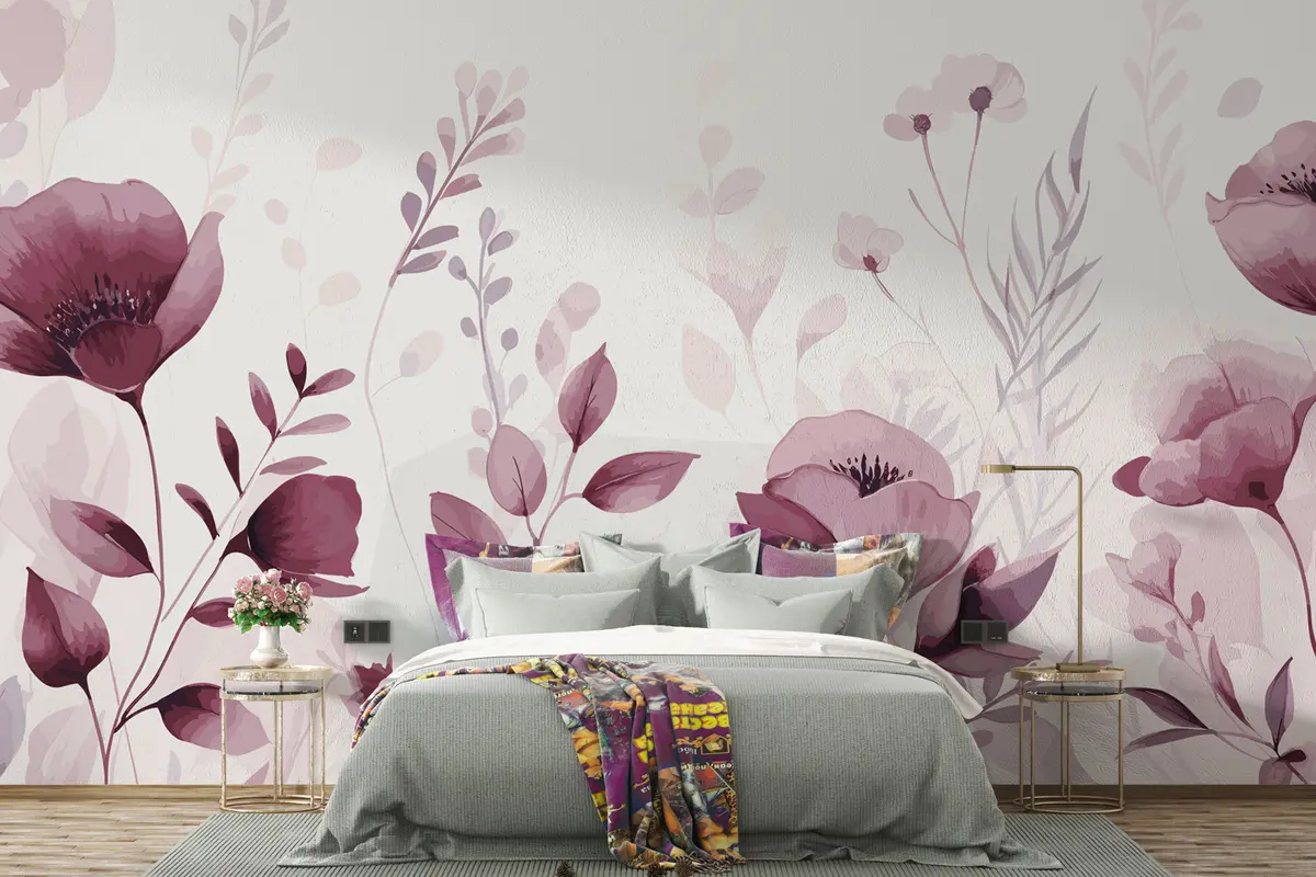 Fotomurales Flores rosas sobre fondo blanco Nr. u99558