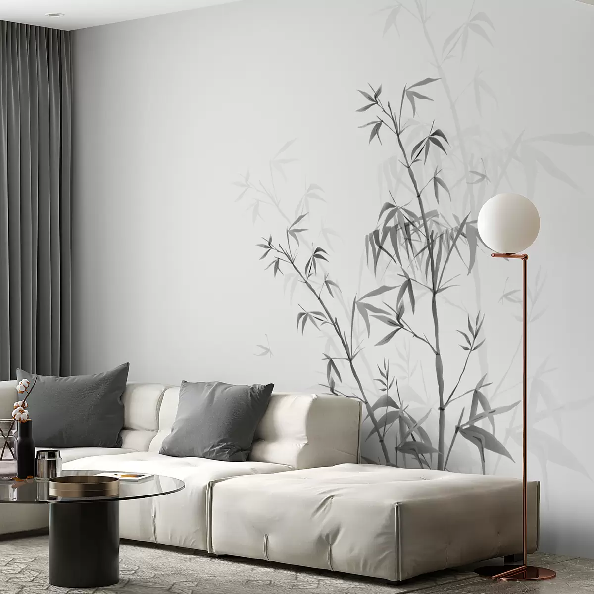 Fotomurales Minimalismo estilo Japandi planta de bambú Chinoiserie color gris Nr. w00546v1