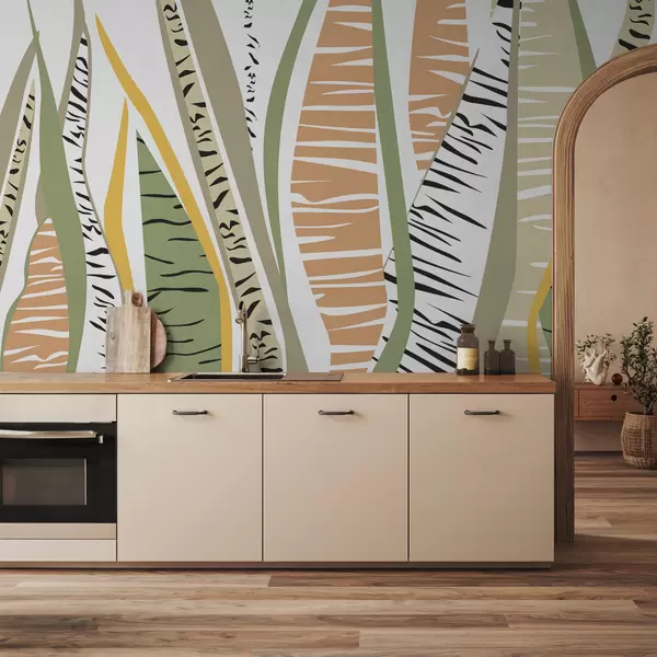 Fotomurales Vegetación estilizada y hojas con rayas horizontales y verticales. Nr. w01001v1