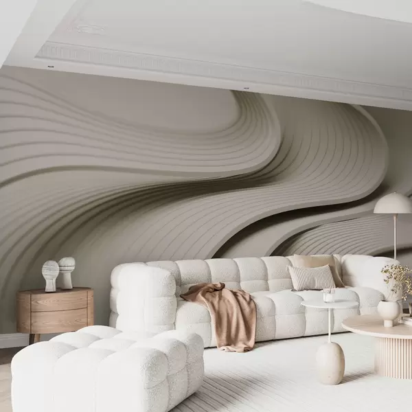 Fotomurales Elegantes ondas voluminosas en estilo 3D en tonos beige Nr. w01147v2