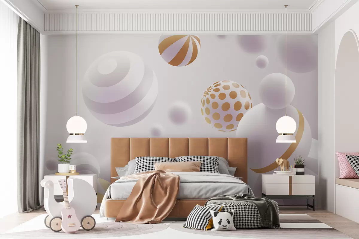 Fotomurales Esferas volantes volumétricas de estilo 3D en tonos grises claros con toques naranjas Nr. w01148