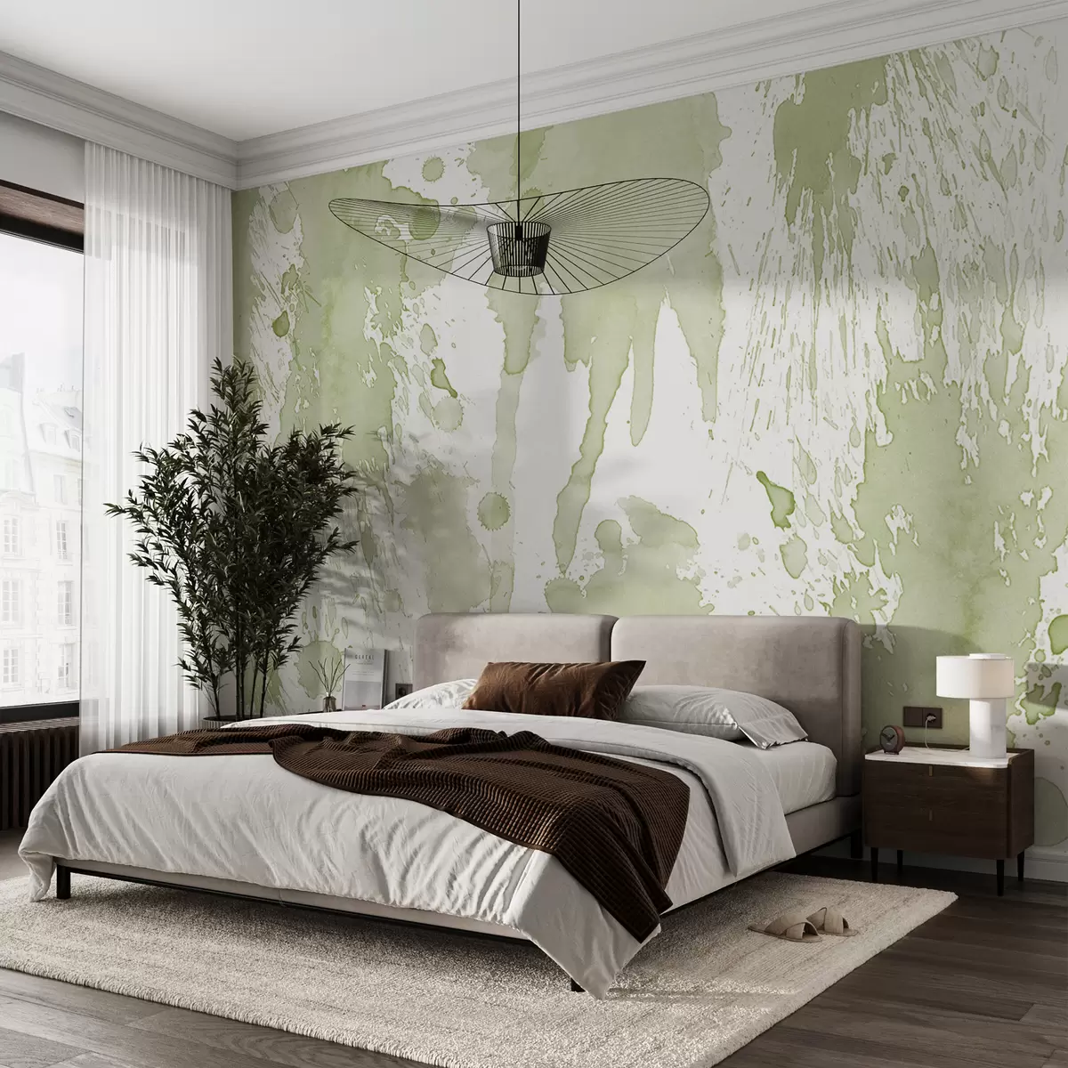 Fotomurales Salpicaduras de acuarela, abstracción de dibujo de pintura, color verde Nr. w01285