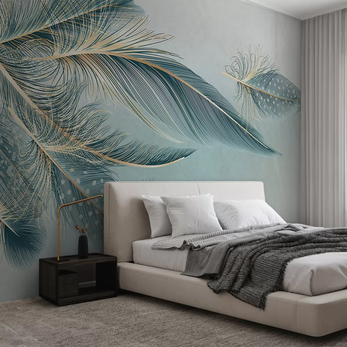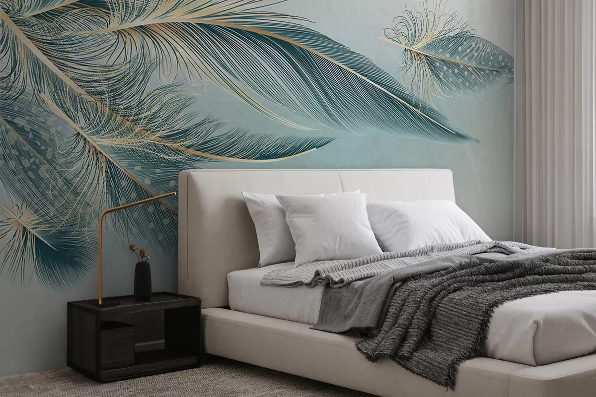 Fotomurales Delicadas plumas en tonos azules Nr. w01312