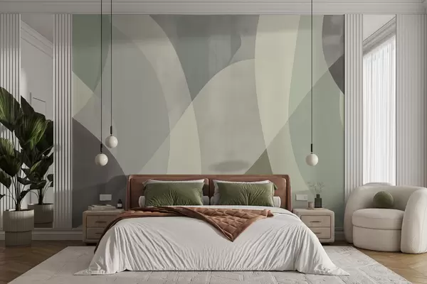 Fotomurales Curvas suaves en tonos apagados con líneas fluidas y degradados verdes, minimalista y moderno. Nr. w01334