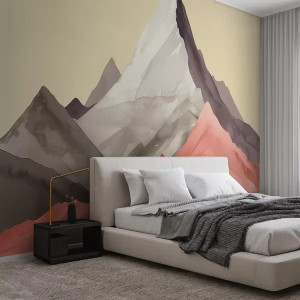 Fotomurales Montañas pastel con acento rojo Nr. w01393