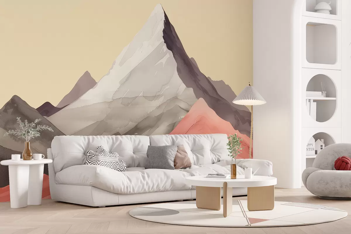 Fotomurales Montañas pastel con acento rojo Nr. w01393