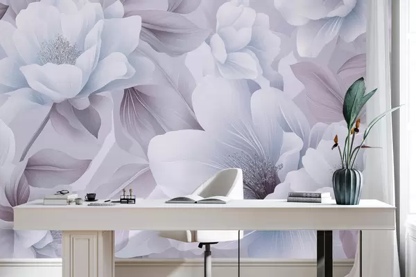 Fotomurales Hermosas flores acrílicas, composición floral, naturaleza, colores pastel azul y morado. Nr. w01449v2