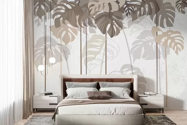 Fotomurales Hojas de Monstera Tropics en tonos beige claro Nr. w01454