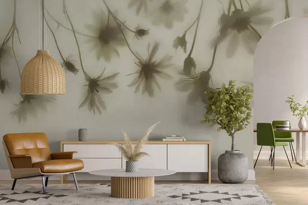 Fotomurales Delicadas flores en la niebla colgando desde arriba en colores pastel. Nr. w01469v1